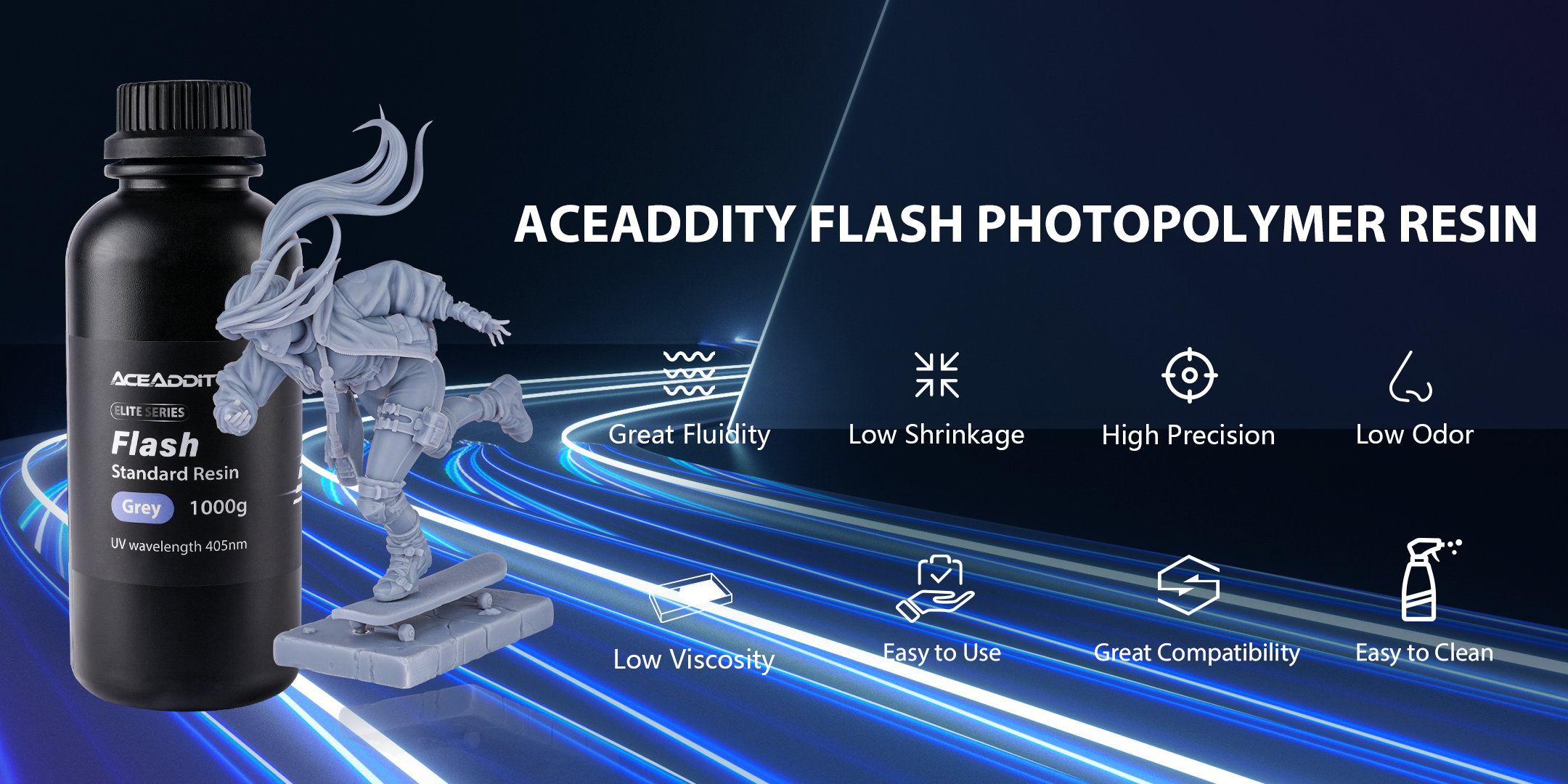 Aceaddity Flash 3D Printer Resin - High-Speed Standard Photopolymer Resin with Great Fluidity, Fast Printing for LCD/DLP 3D Printers, High Precision & Low Shrinkage