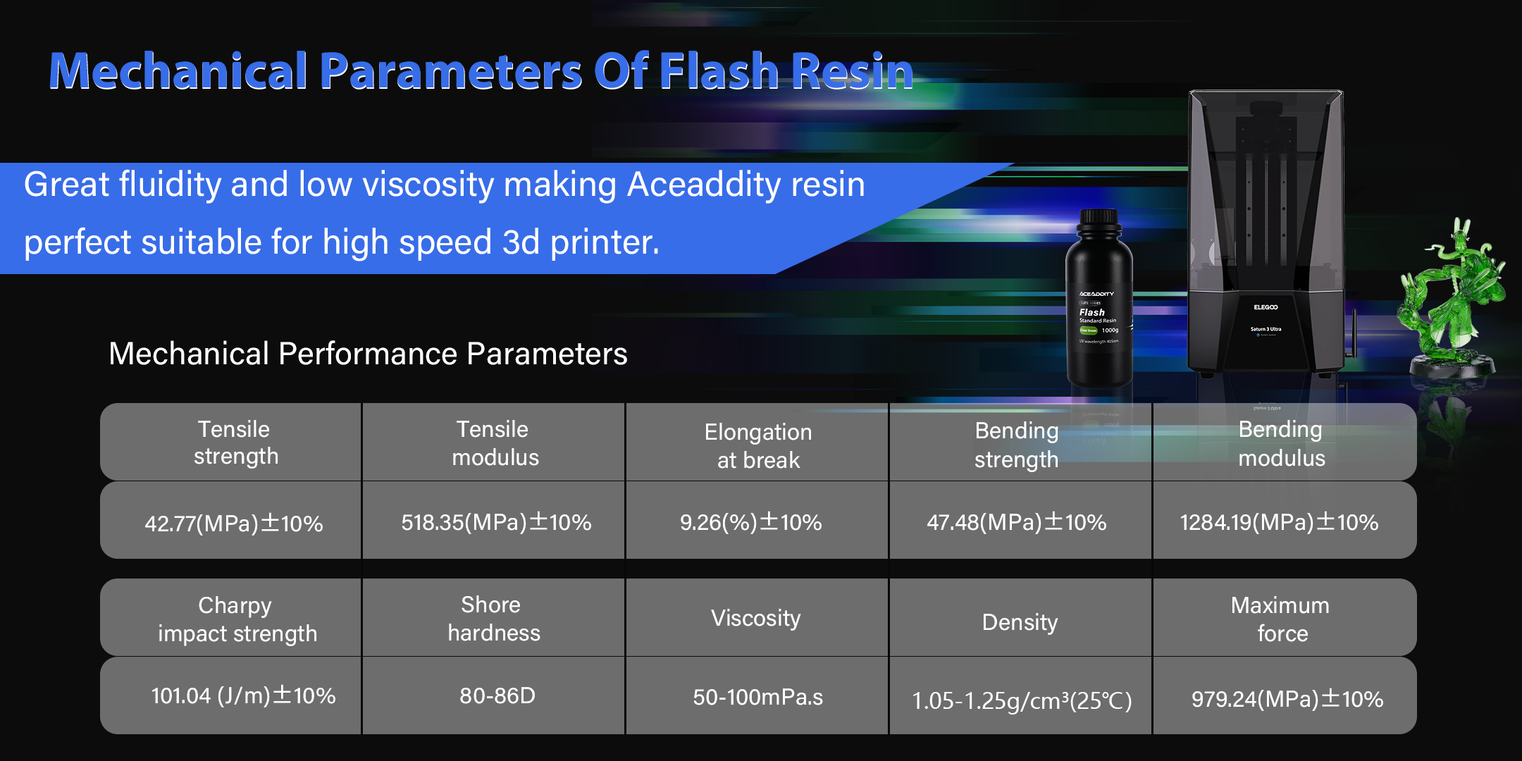 - 【Good Stability & Low Odor】-- Aceaddity flash standard resin has good stability in humid and corrosive environments after 405nm UV-curing. And 3d printer eco resin low odor does not cause harm to humans.