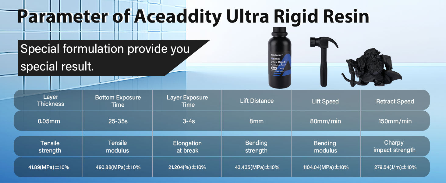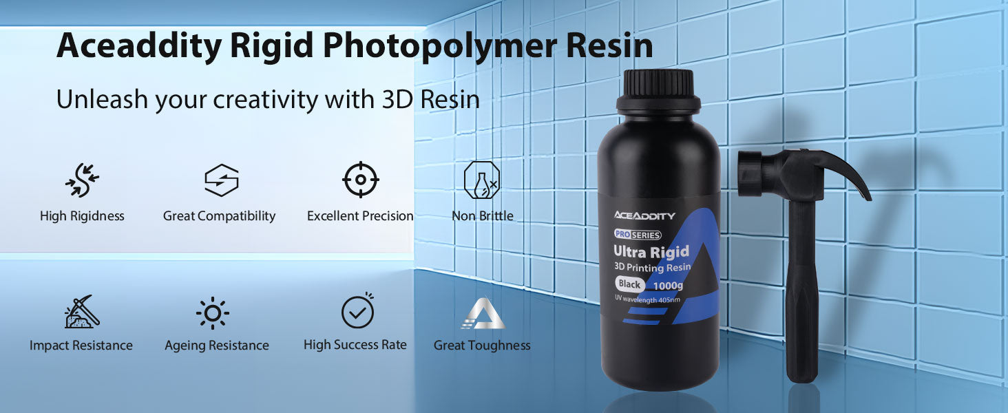 High Rigidty: Aceaddity rigid resin combines strength, hardness, and toughness. Prints endure drops, transport, and feature a scratch-resistant surface post-405nm UV-curing.