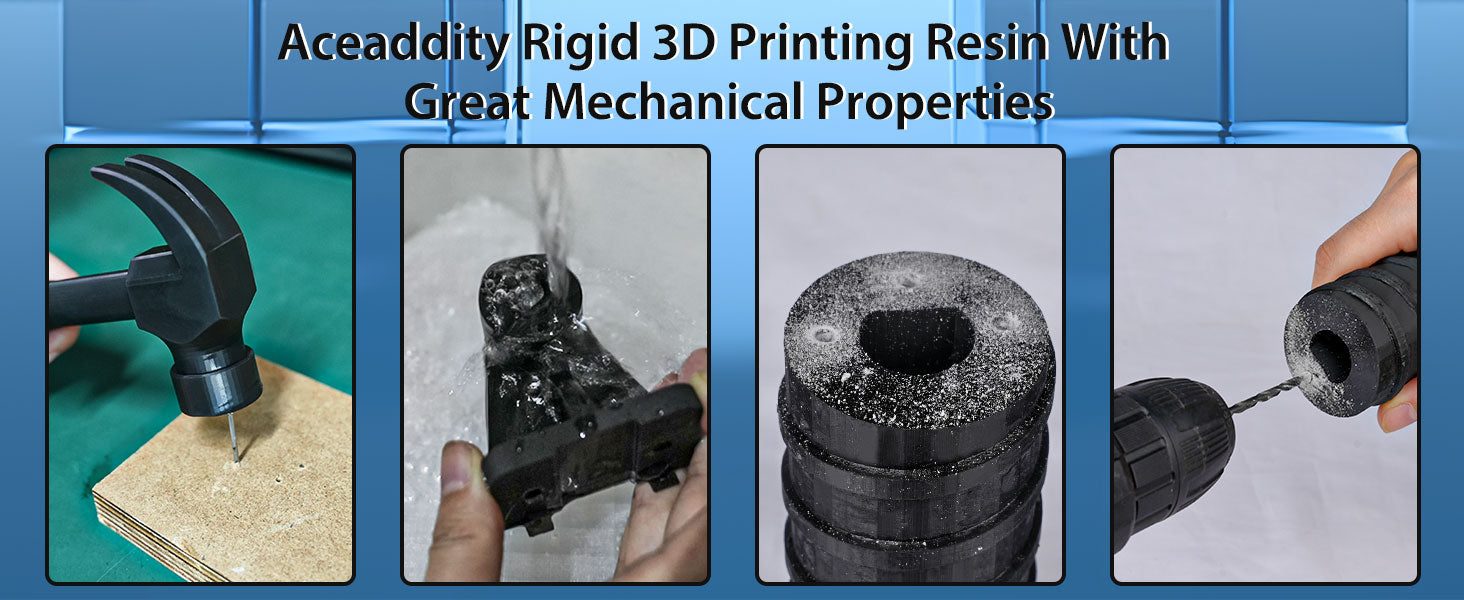 Practical Application: Prints made with Aceaddity rigid resin withstand high impacts without brittleness, making it ideal for industrial parts and electronics.
