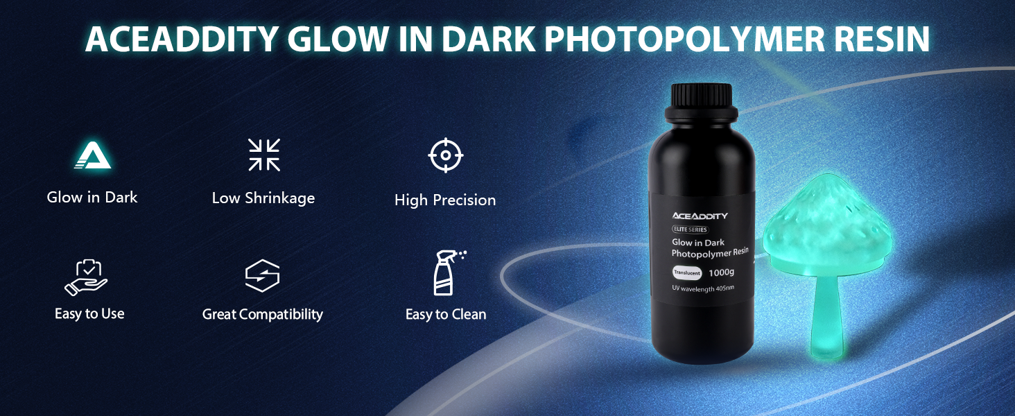 Aceaddity Translucent Glow In Dark Resin Compatible with Most 3D Printers